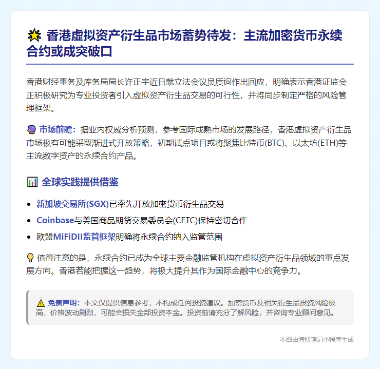 香港或试点比特币、以太坊永续合约 2025年6月8日 下午6:10 • 币资讯 原创文章,作者:海博社,如若转载,请注明出处:https://www.23btc.com/41076/ 赞 (0) 0 生成海报 香港将试点比特币、以太坊永续合约 上一篇 2025年6月8日 下午6:08 香港有望试点比特币、以太坊永续合约 下一篇 2025年6月8日 下午6:11 相关推荐 币资讯 io.net 创始人宣布:计划于5月16日8:00前进行第一季度奖励的最终快照。 【2024-05-13 23:49】金色财经报导,io.net创始人兼CEO Ahmad Shadid在X平台发布文,表示已要求团队在5月16日08:00前通过IO Worker重… 2024年5月13日 0 币资讯 “Mara_Pool存入Binance 790枚BTC” 2025年6月17日 0 币资讯 ZetaChain主网集成Arbitrum 跨越边界!ZetaChain主网正式集成Arbitrum全生态 令人振奋的突破!在全球区块链生态迈向深度融合的关键时刻,ZetaChain于4月16日正式宣布完成对Arbitrum… 2025年4月16日 0 币资讯 比特币鲸鱼转持2.7亿美元以太坊 2025年8月22日 0 Phantom短暂遭遇DDOS攻击,现已恢复运行 【2024-02-02 02:42】23btc报道,加密钱包Phantom在X平台表示,不久前遭遇了DDoS攻击,黑客试图使系统超负荷运作,导致部分服务短暂中断。经过我们的努力,目… 币资讯 2024年2月2日 0 币资讯 短短时间内,BB股价突破了0.55美元的关口。 【2024-05-13 19:27】23btc报道,BB在短时间内突破了0.55美元,目前报价为0.54832美元,过去一小时涨幅高达16.27%。行情波动剧烈,请务必做好风险控制… 2024年5月13日 0 币资讯 英伟达副总裁詹科夫斯基将加入芯片初创公司Lightmatter,担任首席财务官(CFO)。 【2024-07-02 04:37】User需要对中文新闻进行润色和优化,删除不重要的部分,使文案更简洁和符合社交平台规范。 了解!请提供需要润色和优化的具体新闻内容,我来帮您进行… 2024年7月2日 0 币资讯 黄金时报 | 今日要闻速览 【2024-05-30 21:05】12:00-21:00要点:Coinbase、PEPE、Babylon、BlackRock 1. Vitalik透露对以太坊初始设计的一些遗憾;… 2024年5月30日 0 币资讯 美联储维持缩表步伐 美联储重磅决议:继续按既定步伐缩减资产负债表! 据权威金融市场快讯报道,美联储联邦公开市场委员会(FOMC)在最新货币政策会议中作出重大决定: “委员会决议维持现有缩减… 2025年5月8日 0 币资讯 香港代币化绿债结算周期缩至T+1 2025年7月7日 0