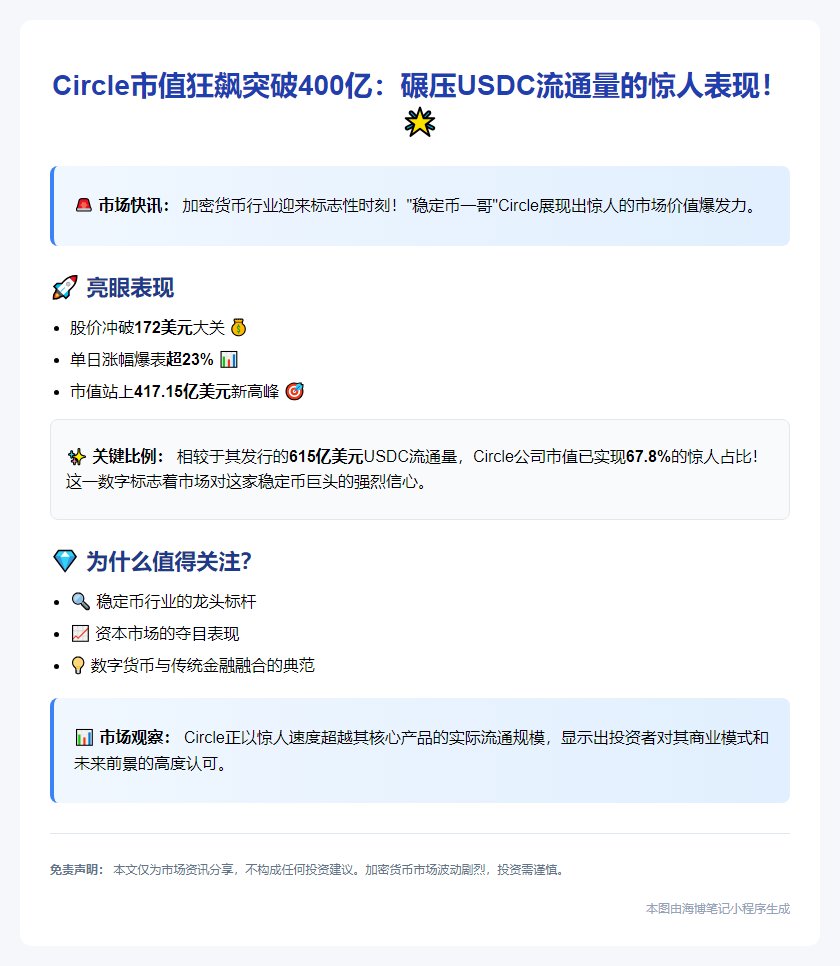 Circle市值突破400亿美元 超USDC流通量60% 2025年6月18日 下午11:15 • 币资讯 原创文章,作者:admin,如若转载,请注明出处:https://www.23btc.com/45234/ 赞 (0) 0 生成海报 Polygon联创Baylina创建zkEVM新项目Zisk 上一篇 2025年6月18日 下午11:03 Circle市值破400亿 下一篇 2025年6月18日 下午11:18 相关推荐 币资讯 “BitMEX游说资金换赦免” 2025年9月4日 0 币资讯 AAVE突破280美元 2025年6月30日 0 SUSHI突破1.6美元,24小时涨幅25.1% 【2024-02-24 11:41】23btc报道称,最新数据显示,SUSHI价格突破1.6美元,目前报价1.61美元,24小时涨幅达25.1%。市场波动频繁,请注意风险防范。 币资讯 2024年2月24日 0 字节跳动旗下子公司BytePlus与Sui开发团队达成合作。 【2024-04-17 21:20】4月17日,字节跳动旗下子公司BytePlus宣布将与Mysten Labs展开合作,将其优质的推荐解决方案和增强现实产品等服务引入Sui。By… 币资讯 2024年4月17日 0 美联储3月降息的概率为18.5% 【2024-02-09 07:56】23btc报道,根据CME“美联储观察”数据显示,本月美联储将维持利率在5.25%-5.50%的区间的概率为81.5%,而降息25个基点的概率则… 币资讯 2024年2月9日 0 美国参议员称比特币是维护消费者权益的信得过选择。 【2024-04-11 09:48】23btc报道称,美国参议员Marsha Blackburn在周二举行的比特币政策峰会上分享了对比特币的看法。当被问及作为一位倡导消费者权益和隐… 币资讯 2024年4月11日 0 币资讯 美联储6月暂停加息概率超94% 2025年5月22日 0 W价格突破0.3美元,24小时内涨幅达到20.8%。 【2024-09-27 09:05】23btc报道,行情显示,W币突破0.3美元,当前报价为0.2984美元,24小时涨幅达20.8%。市场波动剧烈,敬请关注风险管理。 ### 新… 币资讯 2024年9月27日 0 币资讯 OpenAI计划于未来两周内发布其最新“草莓”模型。 【2024-09-10 22:10】金色财经近日报道,据《The Information》披露,未来两周内,OpenAI将发布一款名为“草莓”模型,作为其ChatGPT服务的一部分… 2024年9月10日 0 币资讯 Native Markets获Hyperliquid稳定币USDH命名权 2025年9月15日 0