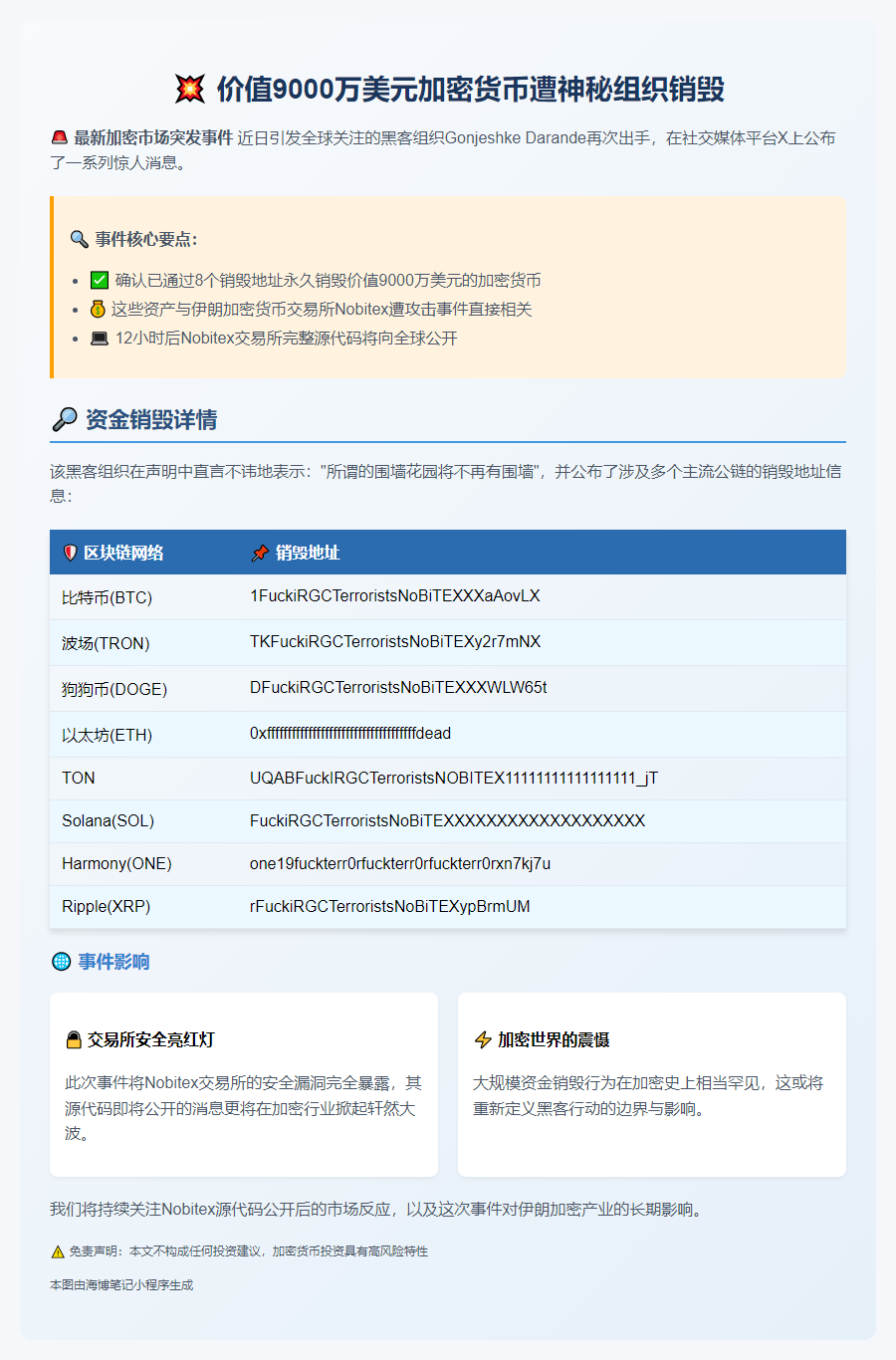黑客公布9000万美元加密货币销毁地址 2025年6月19日 下午12:19 • 币资讯 原创文章,作者:admin,如若转载,请注明出处:https://www.23btc.com/45527/ 赞 (0) 0 生成海报 高盛:特朗普不会7月重启对等关税 上一篇 2025年6月19日 下午12:03 xAI数据中心污染被起诉 下一篇 2025年6月19日 下午12:21 相关推荐 币资讯 币安完成APE合约置换 2025年11月3日 0 币资讯 Jupiter收购Rain.fi借贷市场 【重磅整合!Jupiter Exchange收购Rain.fi,Solana信贷市场迎来新纪元】 据SolanaFloor最新披露,Solana生态头部去中心化交易所Jupiter… 14小时前 0 Pac Finance倾情启动第二轮积分盛典,Blast积分强势发放! 【2024-07-20 15:43】据悉,Blast 生态借贷协议 Pac Finance 近日宣布启动第二轮 Blast 积分发放。此前,Pac 已完成首轮 Blast 积分的发… 币资讯 2024年7月20日 0 币资讯 比特币跌穿11.3万美元 2025年8月25日 0 币资讯 鲍威尔:核心PCE或达2.3%-2.4% 2025年10月30日 0 NEAR基金会将申请.near顶级域名 【2024-02-09 07:01】23btc报道,NEAR协议团队和非营利组织NEAR基金会计划与可互操作域名公司D3 Global合作,共同在即将到来的ICANN申请窗口中提出… 币资讯 2024年2月9日 0 比特币矿工收入在5月大幅减少,降至9.63亿美元,同比下降46%。 【2024-06-02 11:10】23btc报道称,根据The Block Pro的数据显示,由于比特币四月份的区块奖励减半影响,比特币矿工收入在五月份下降了46%,至9.63亿… 币资讯 2024年6月2日 0 . 维塔利克·布特林发布文章《探寻 Circle STARKs》 【2024-07-23 19:07】7月23日消息,Vitalik Buterin 在其文章《探索 Circle STARKs》中指出,过去两年间,STARK 协议的一个重要趋势是… 币资讯 2024年7月23日 0 币资讯 币安10月10日迎大考,加密系统显脆弱 2025年11月6日 0 Starknet桥接存储总价值达87.8万枚ETH 【2024-03-03 02:53】23btc报道,根据Dune数据显示,zkSync桥接存储总价值已达3251912枚ETH,Starknet桥接存储总价值(TVB)为87807… 币资讯 2024年3月3日 0